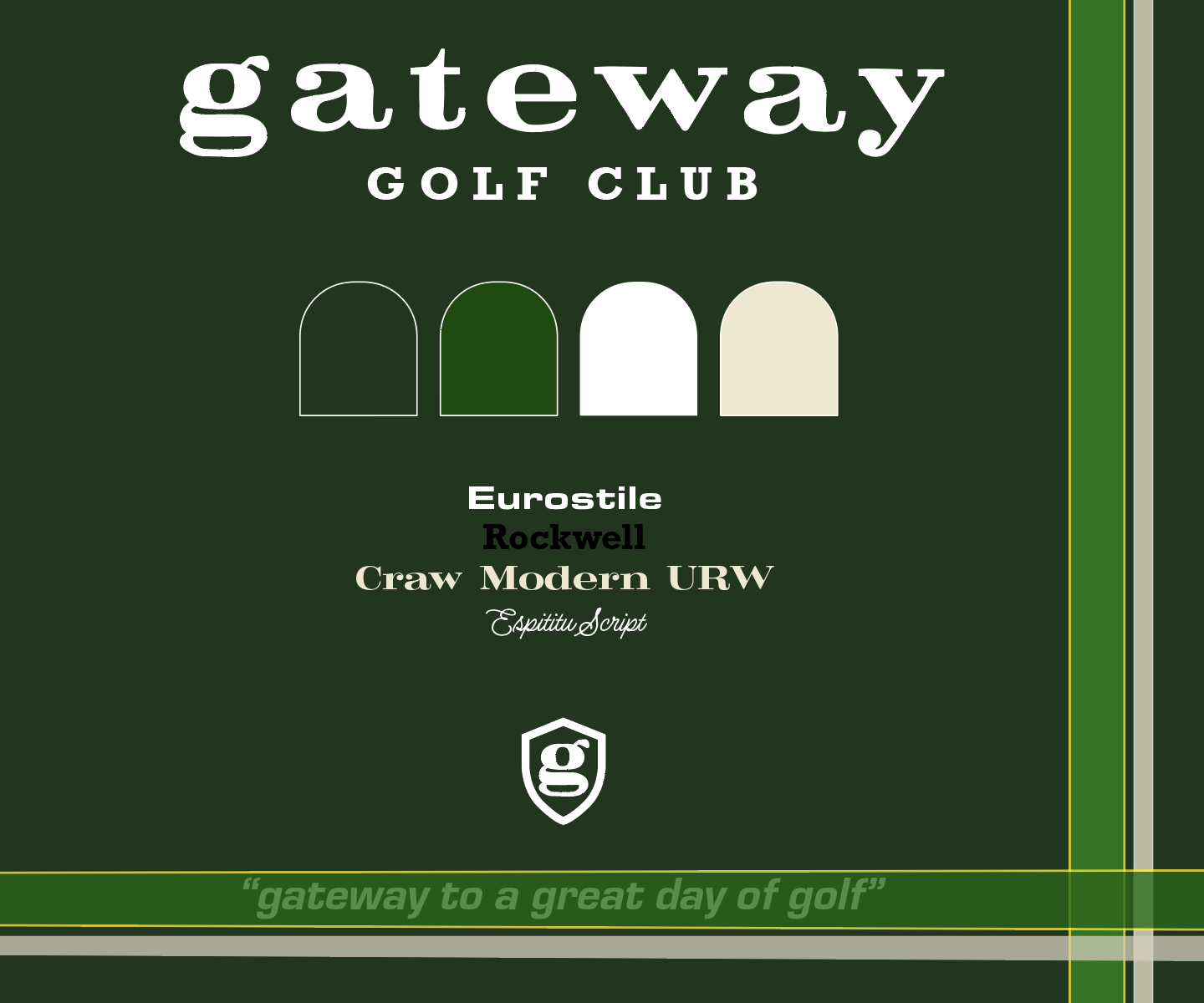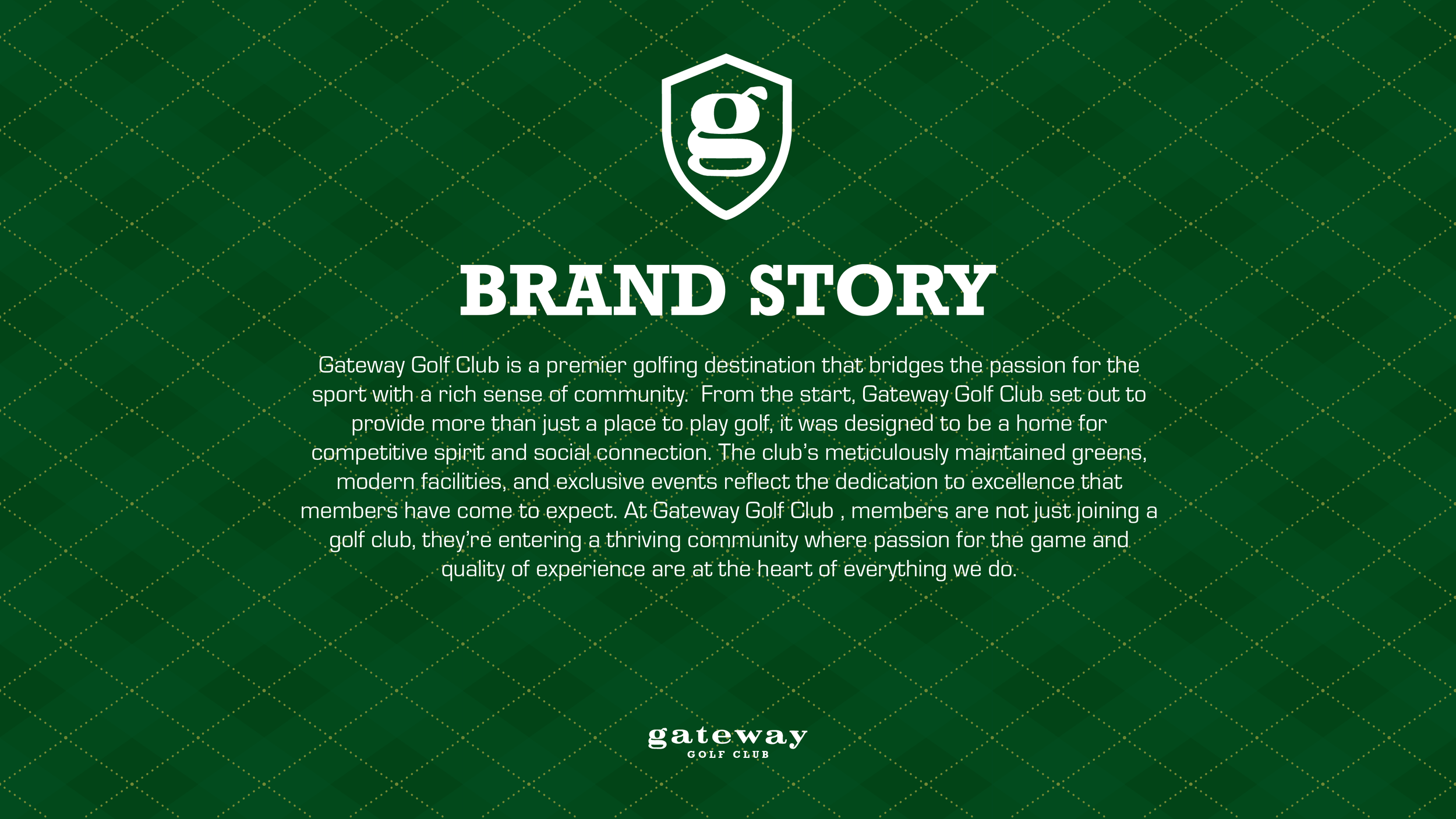In branding Gateway Golf Club, a premier golf course in North Carolina, my primary goal was to create a presentation that delivered the experience a member would have at Gateway GC. The club offers a high-class golfing experience, and I wanted its branding to reflect that level of prestige. By crafting a visual identity that is both simple and strong, Gateway Golf Club feels like an established name in the industry—timeless and built on tradition.